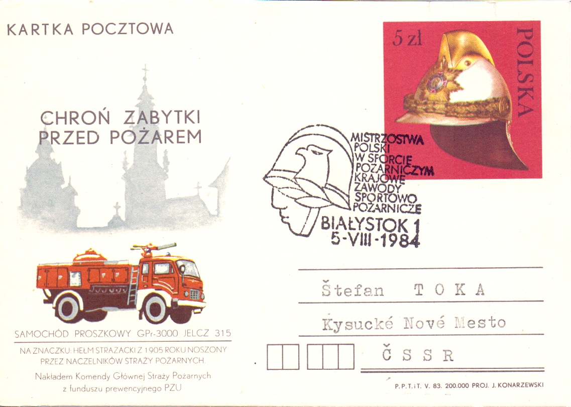 Polsko – Poštový lístok s požiarnou tematikou.