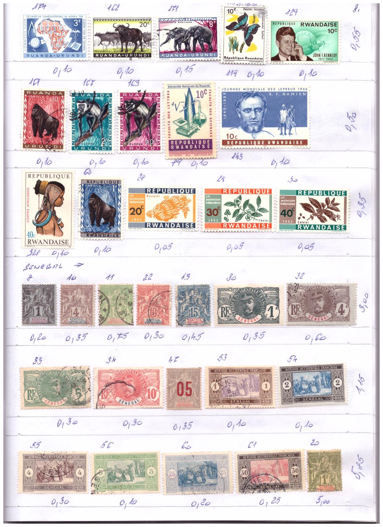 Použité známky Afriky .  Číslovanie podľa katalógu Michel .