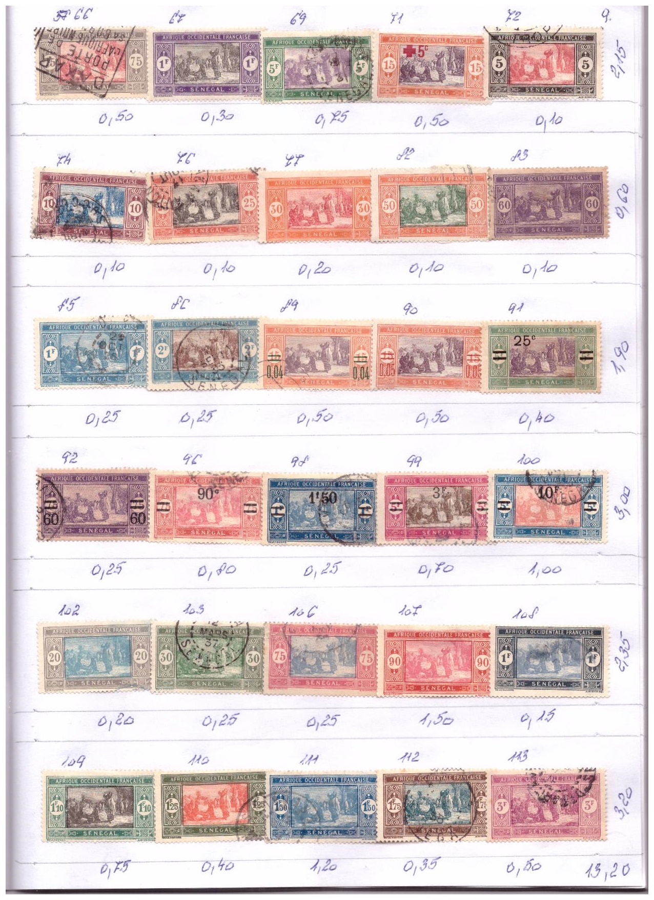Použité známky Afriky .  Číslovanie podľa katalógu Michel .